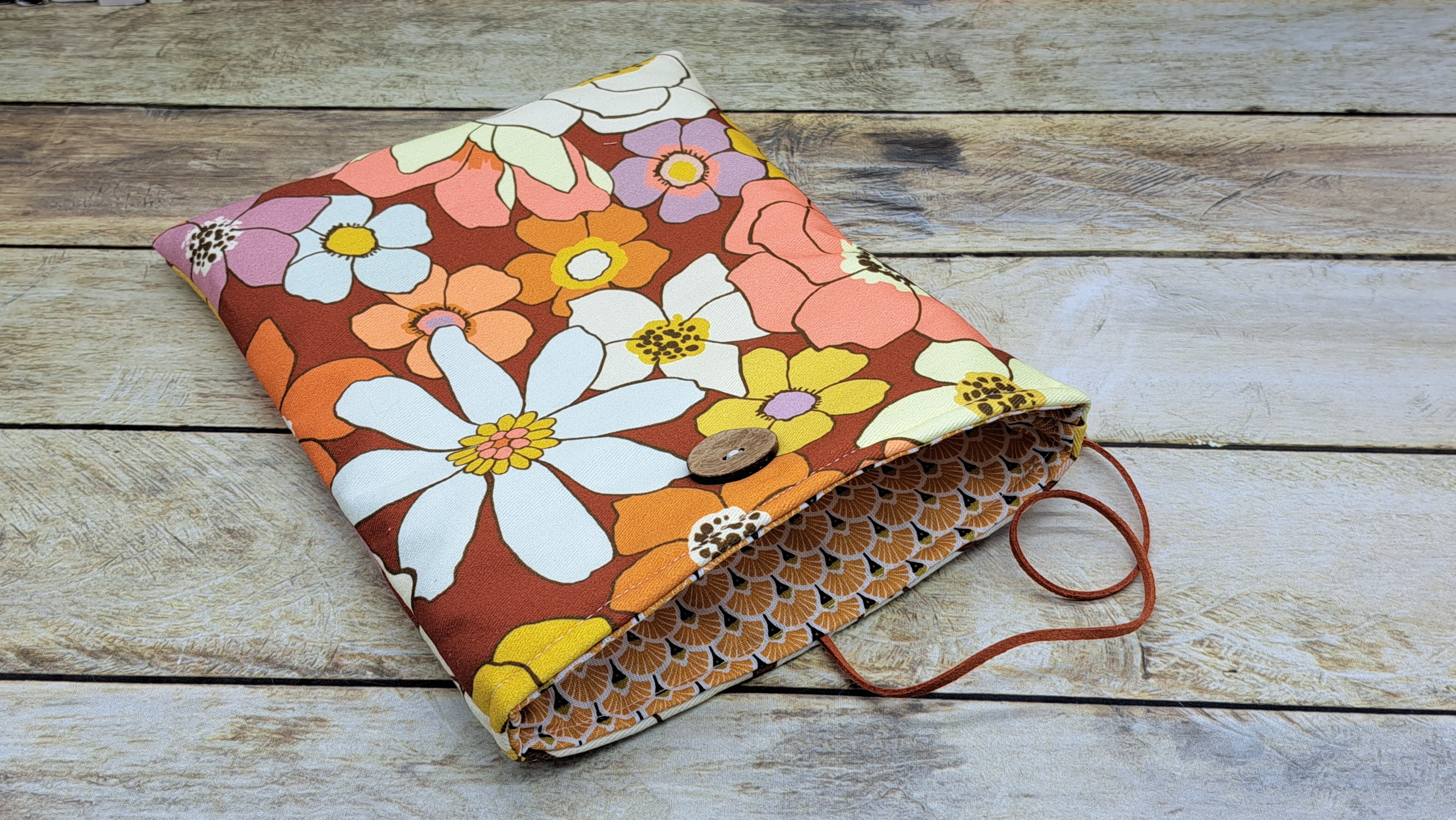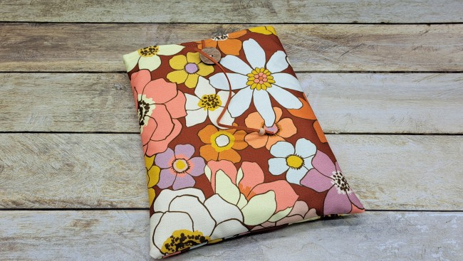 Housse de protection pour livre en tissu coton molletonné se fermant avec un bouton et un cordon