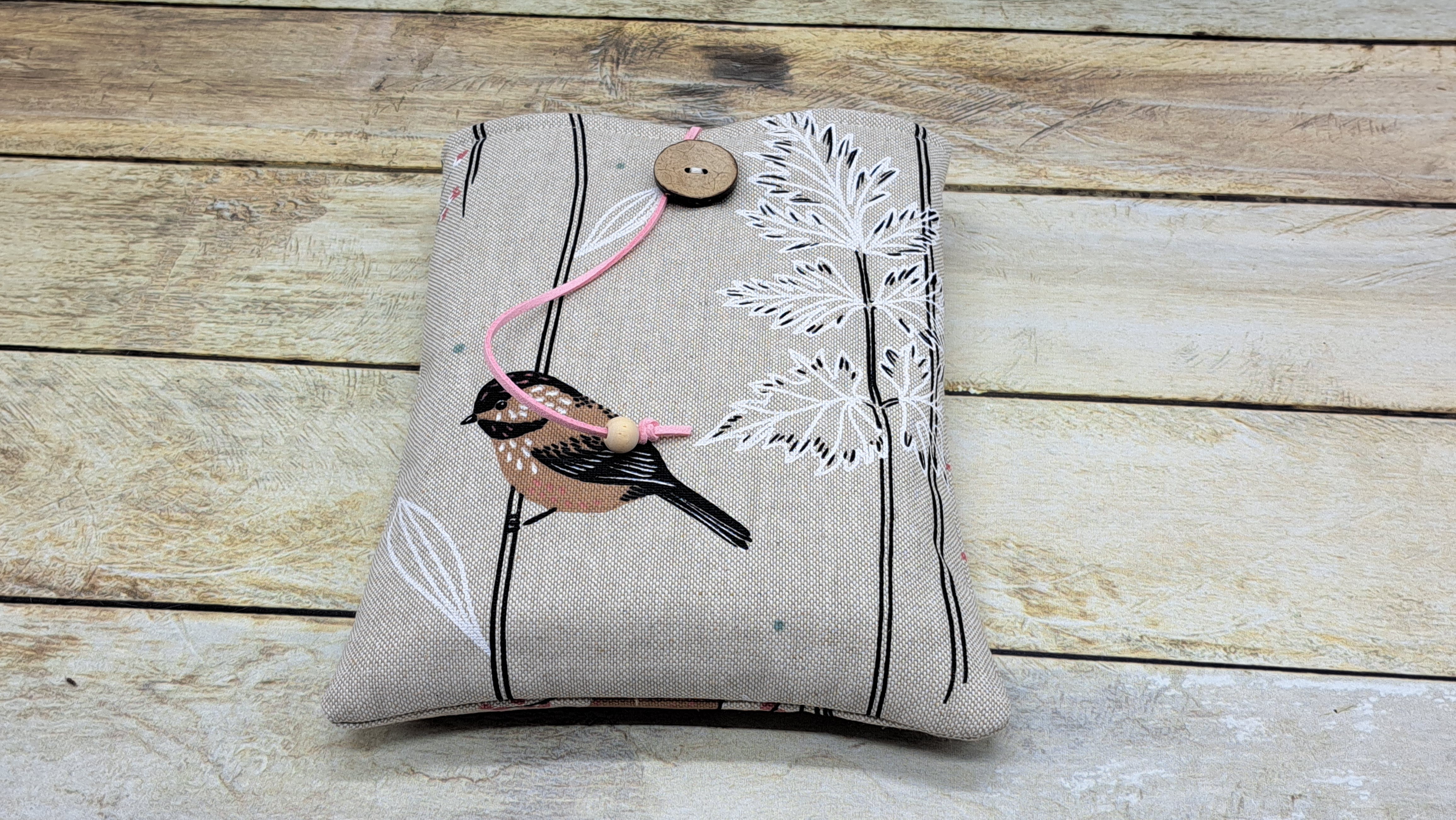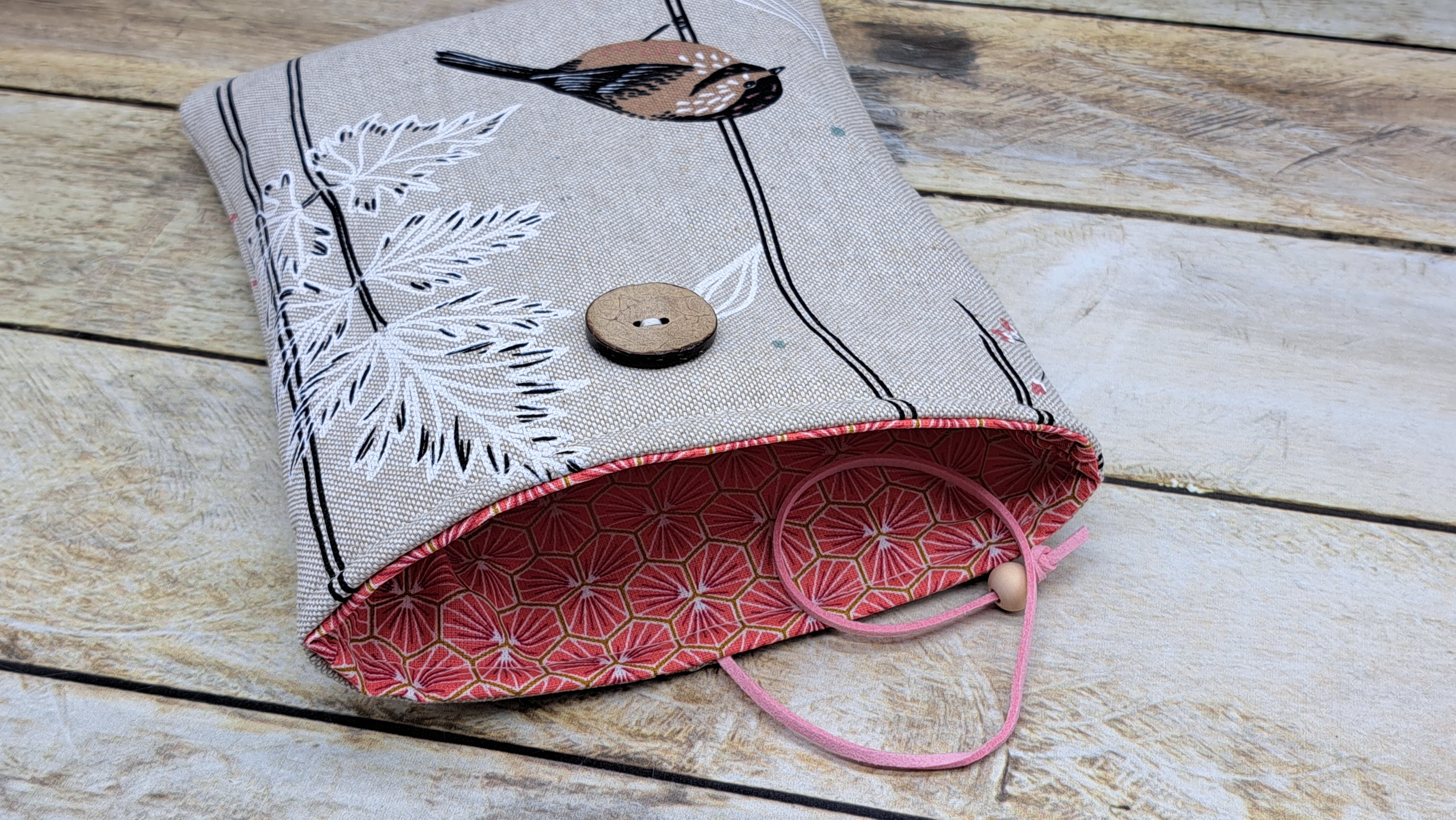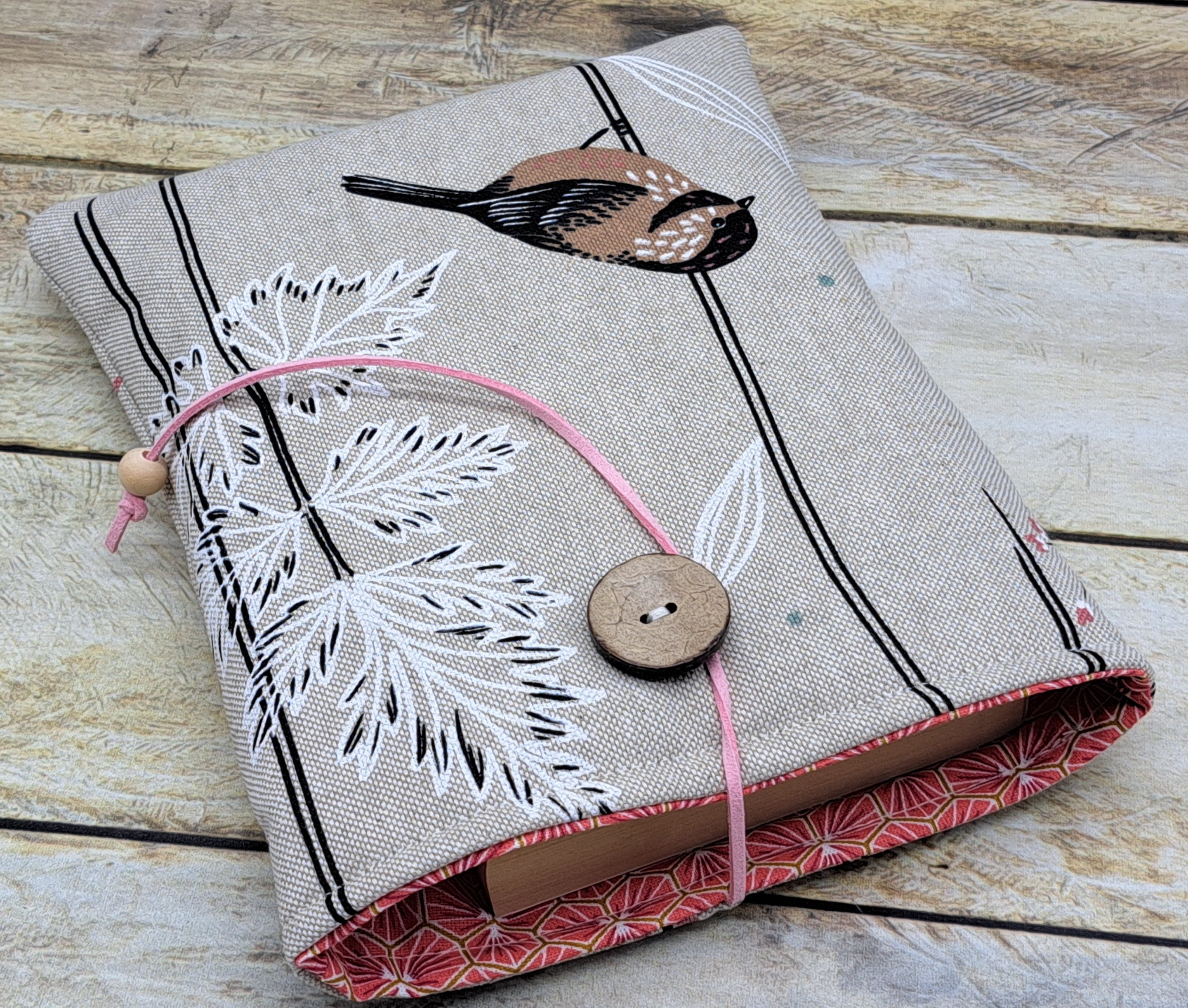 Housse de protection pour livre en tissu coton molletonné se fermant avec un bouton et un cordon