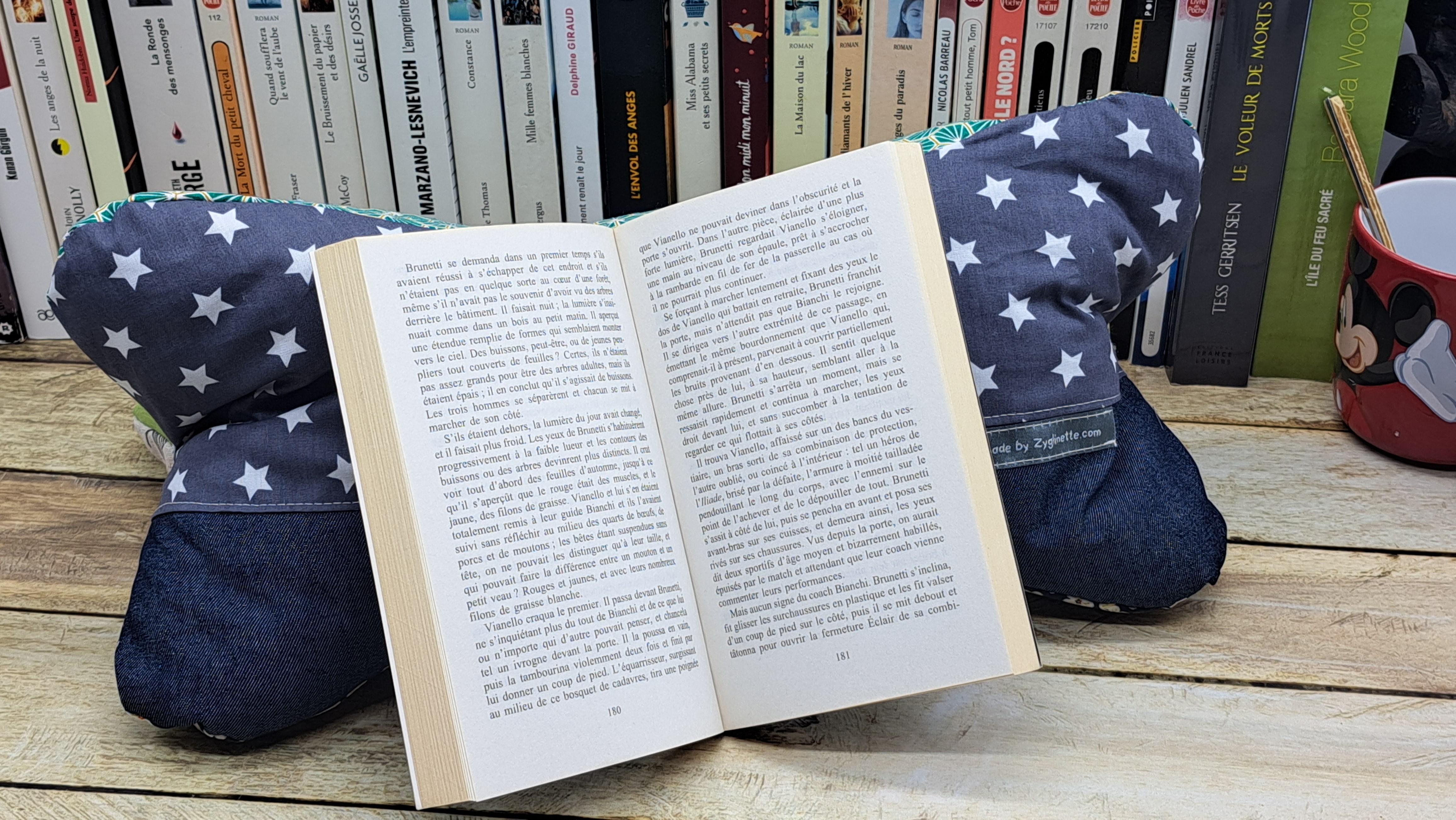 Création de zyglinette fait à la main - made in Belgium - Coussin de lecture - repose livre - support de livre