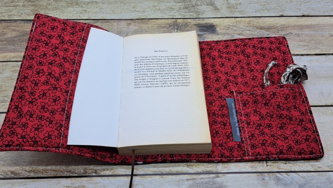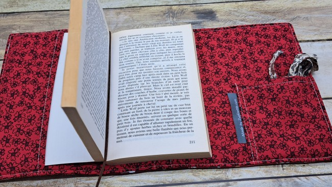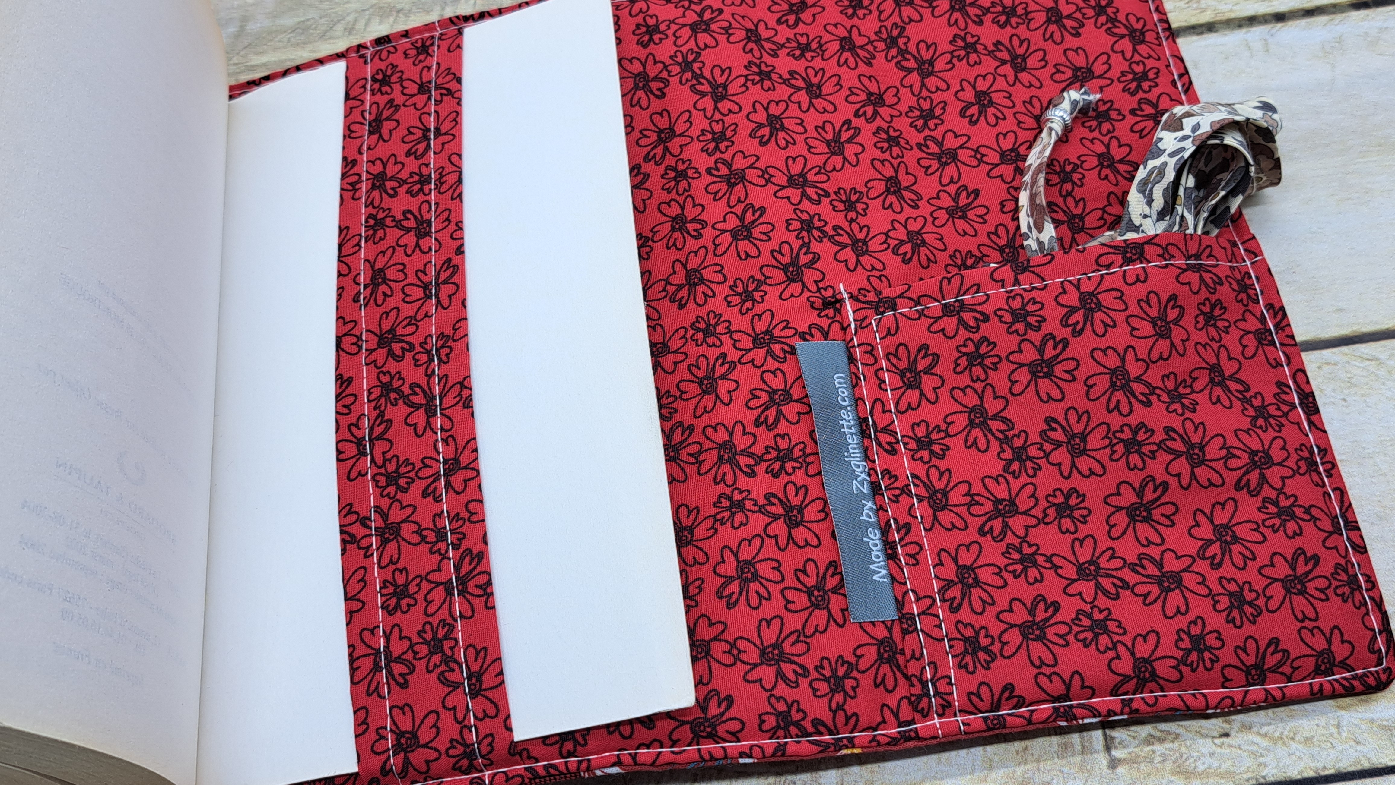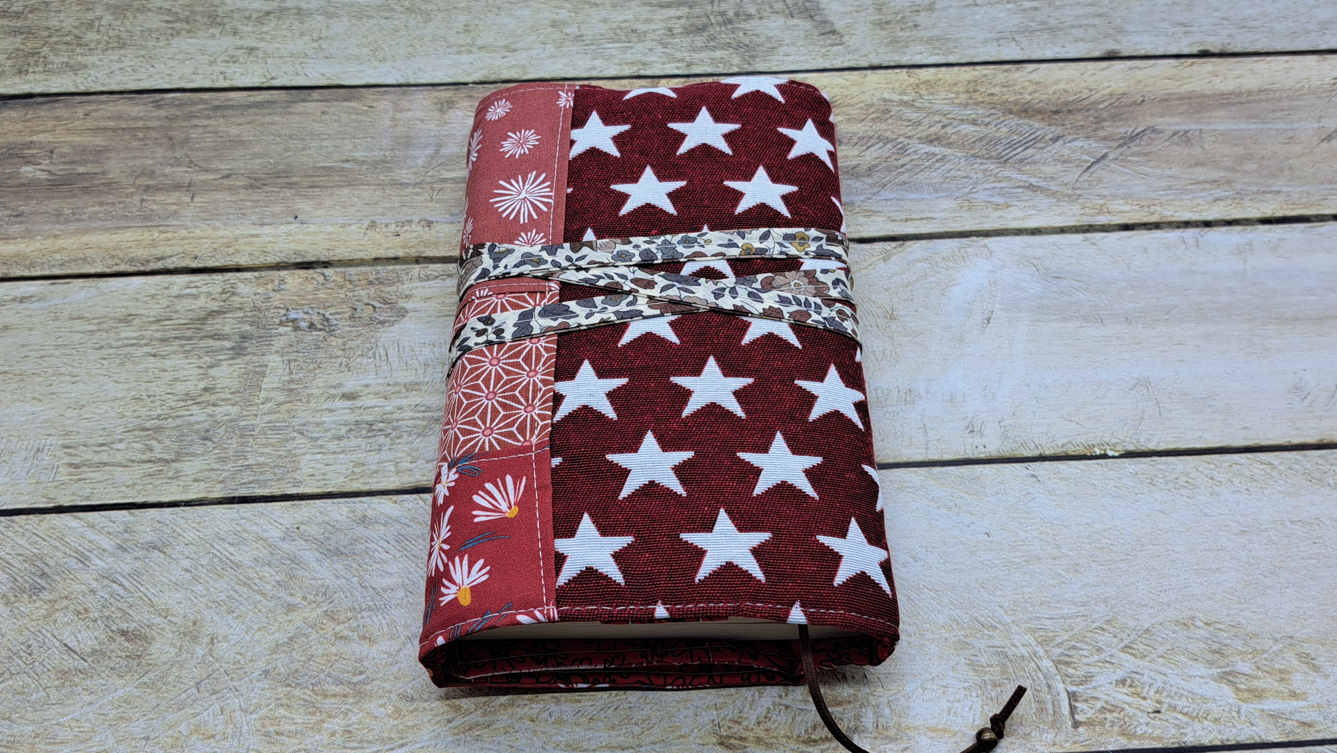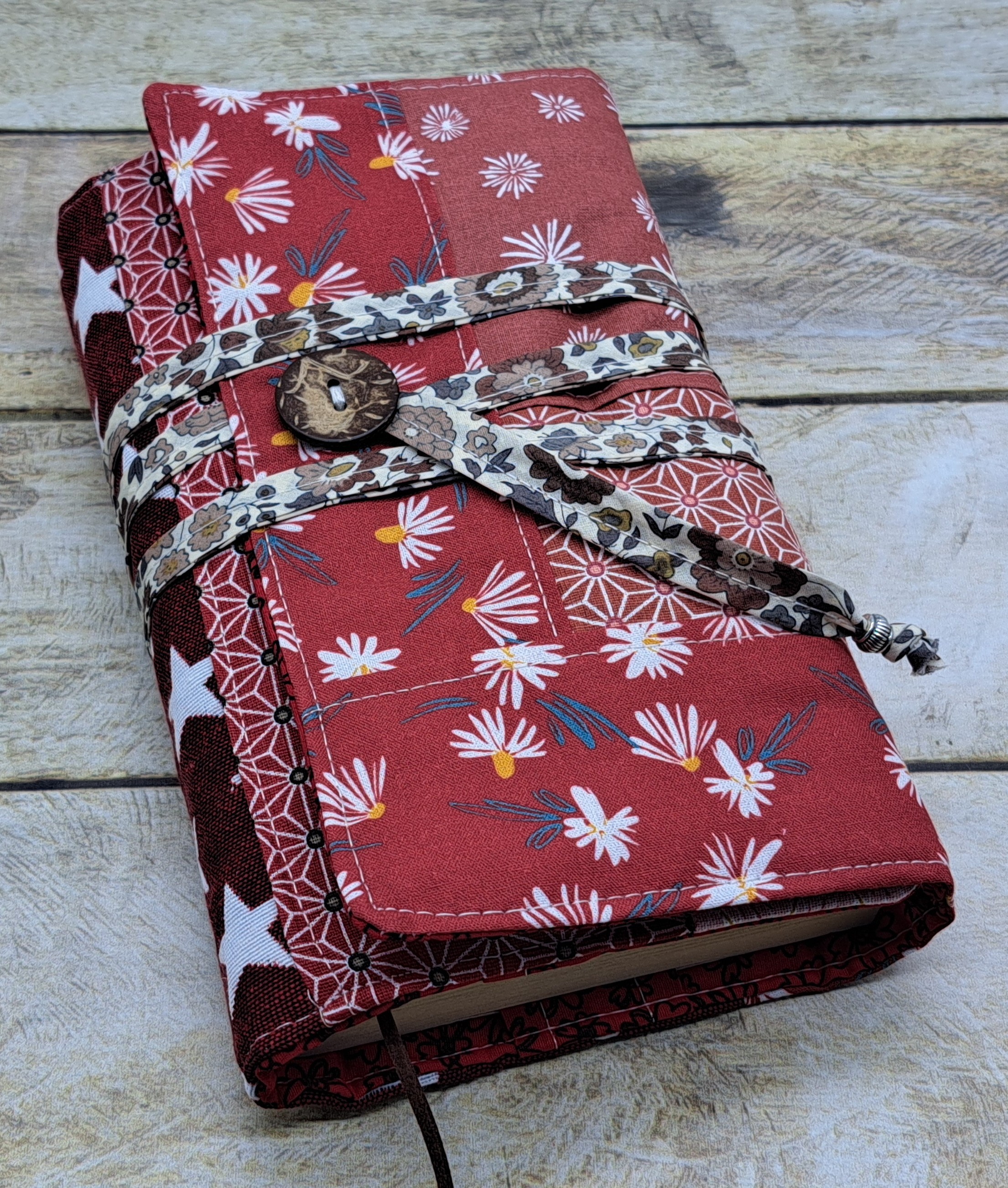 Couverture livre en tissu fait main, couvre livre de poche, cache couverture en coton patchwork rouge
