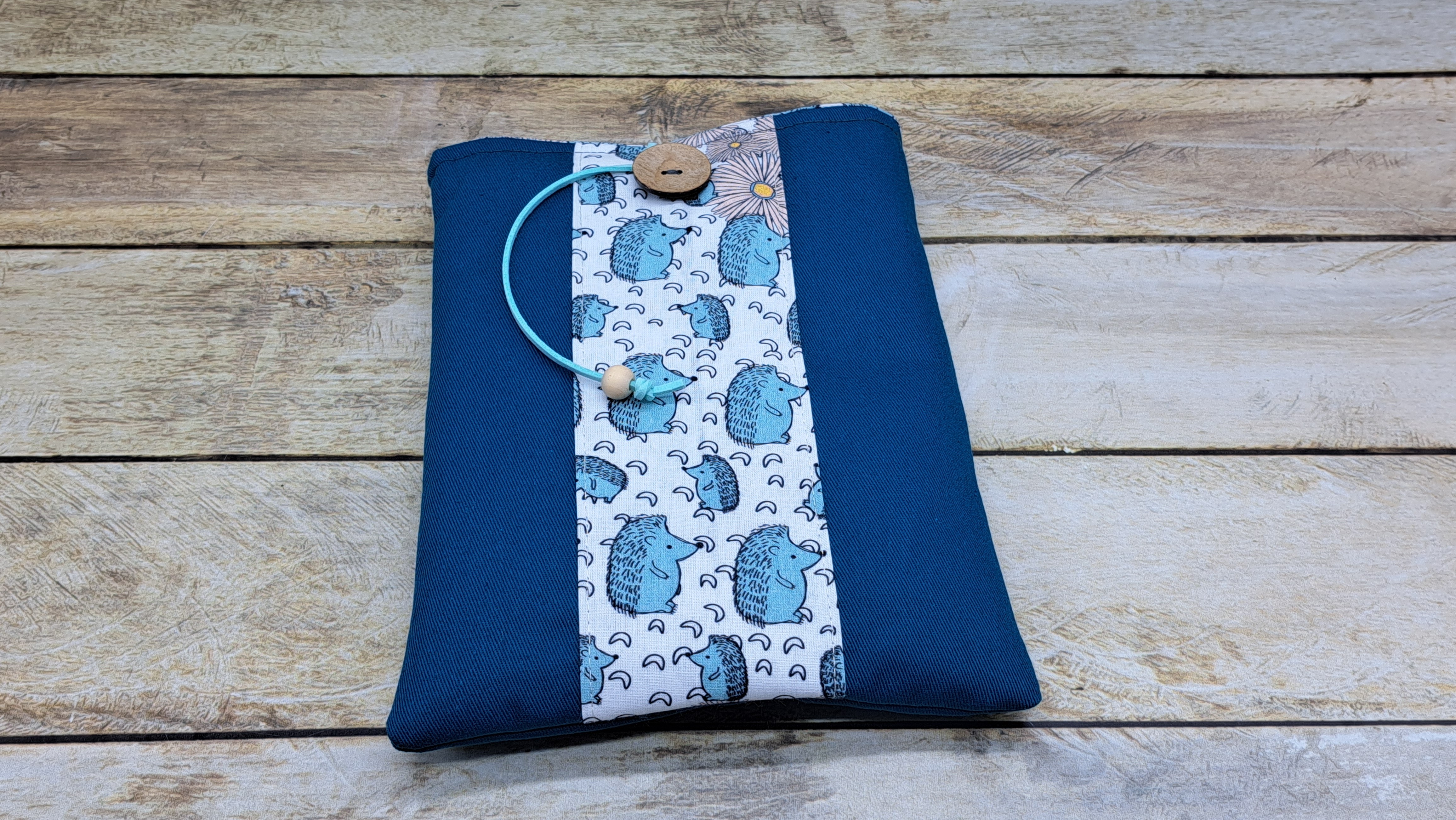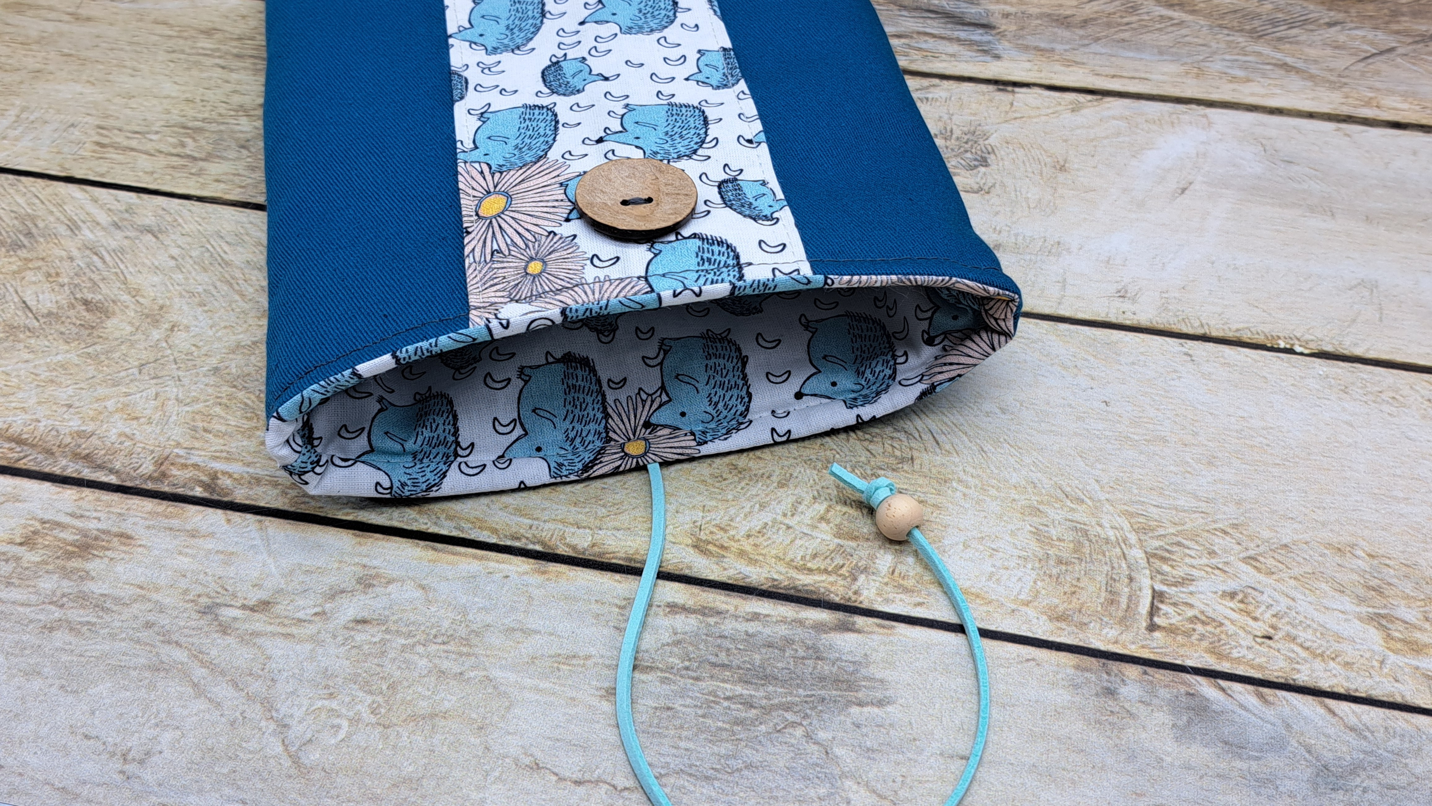 Housse de protection pour livre en tissu coton molletonné se fermant avec un bouton et un cordon