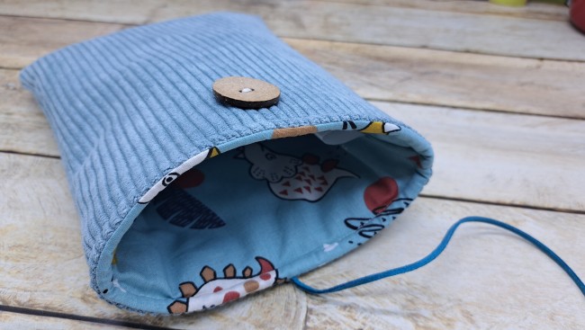 Se ferme avec un bouton et un cordon