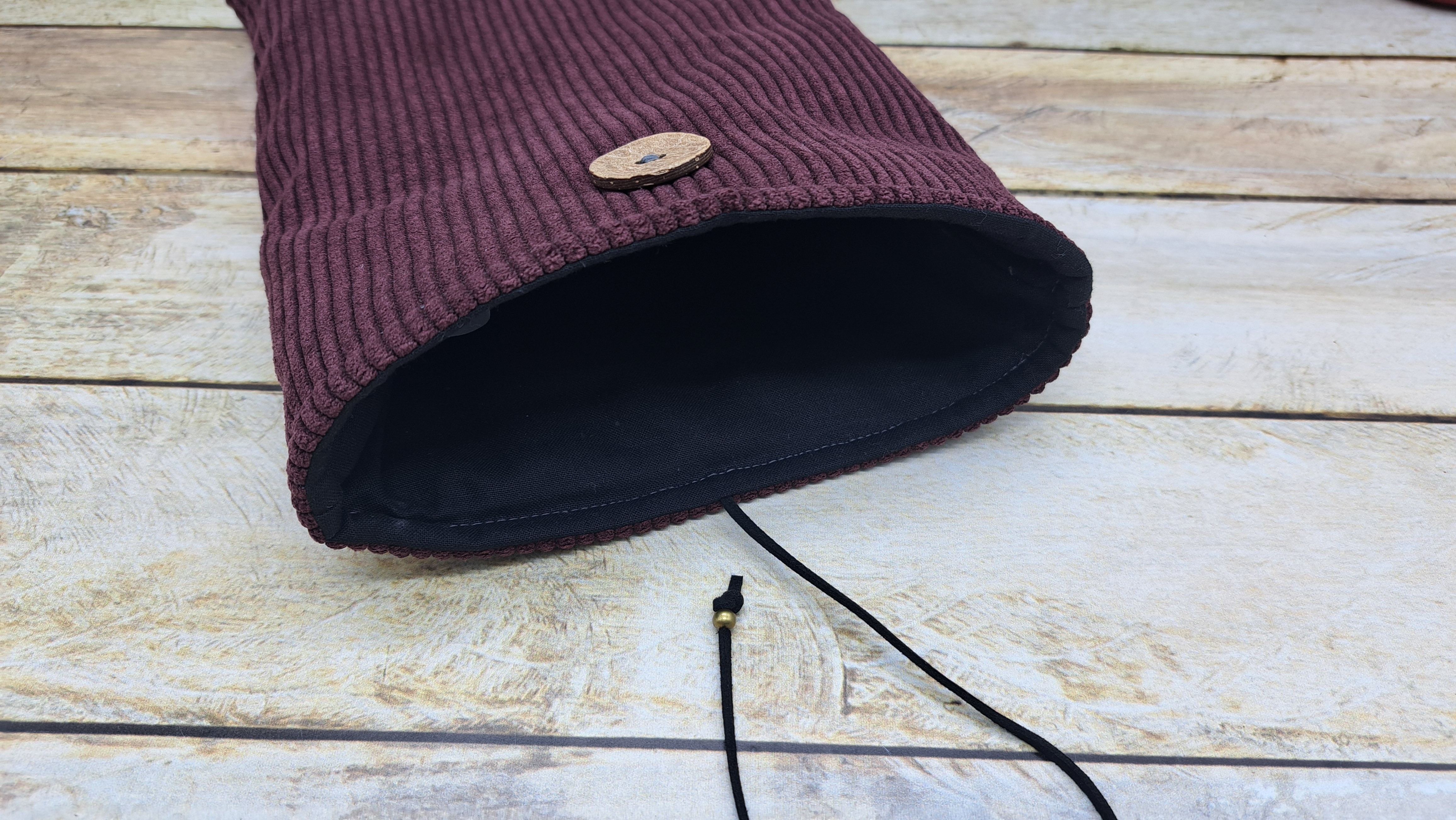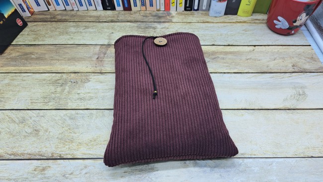 Housse de protection pour livre en tissu velours molletonné se fermant avec un bouton et un cordon