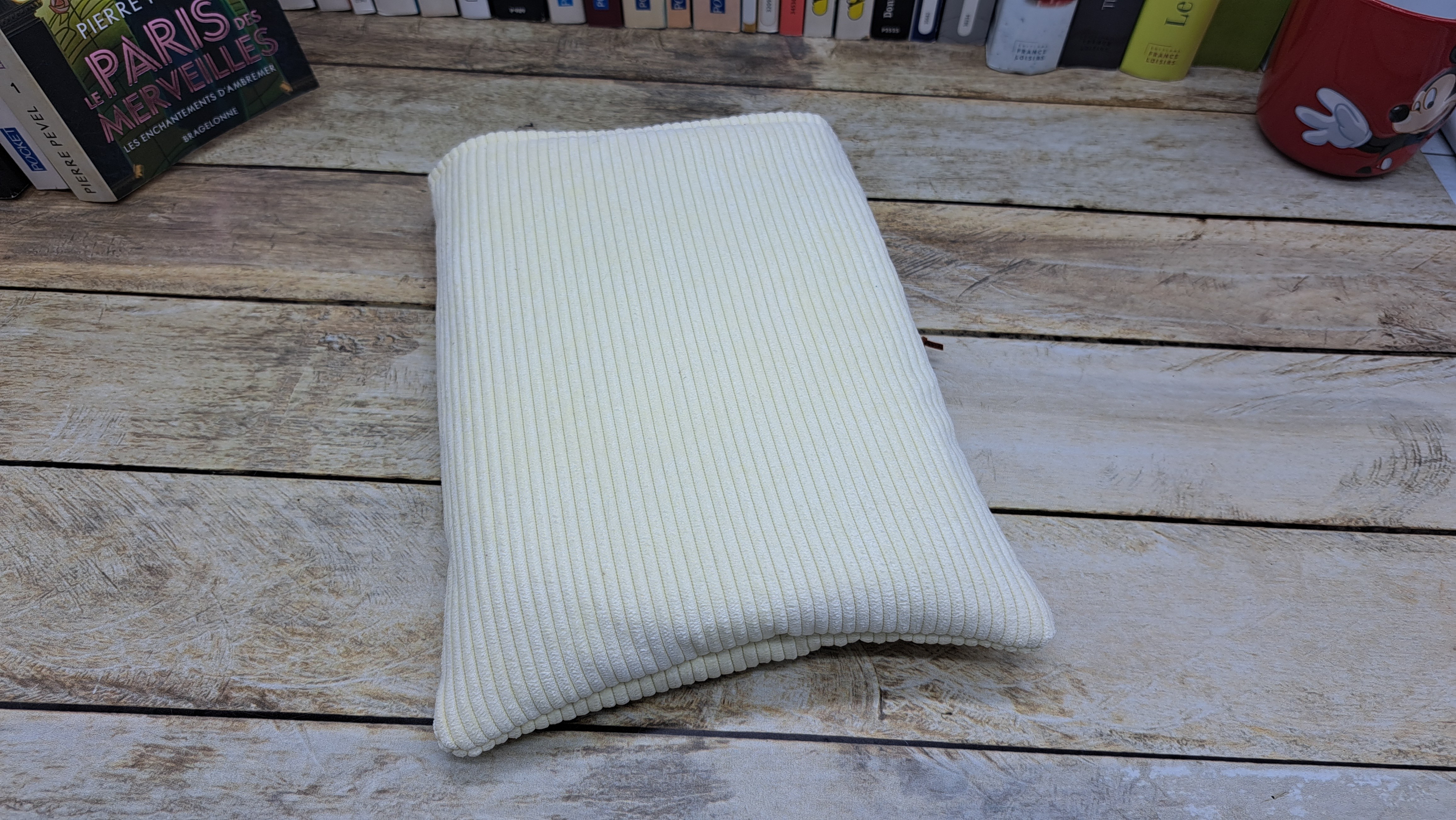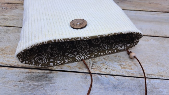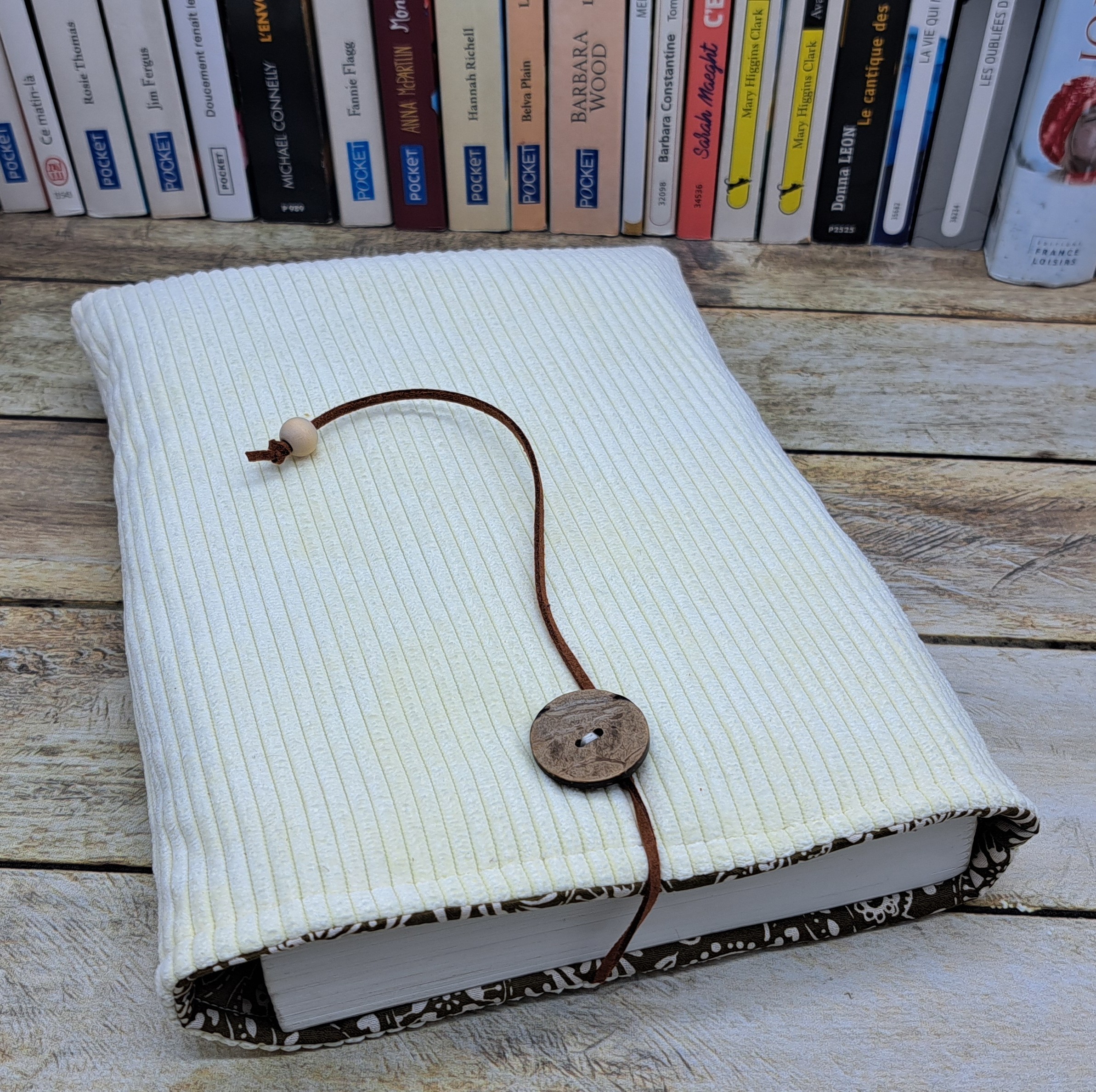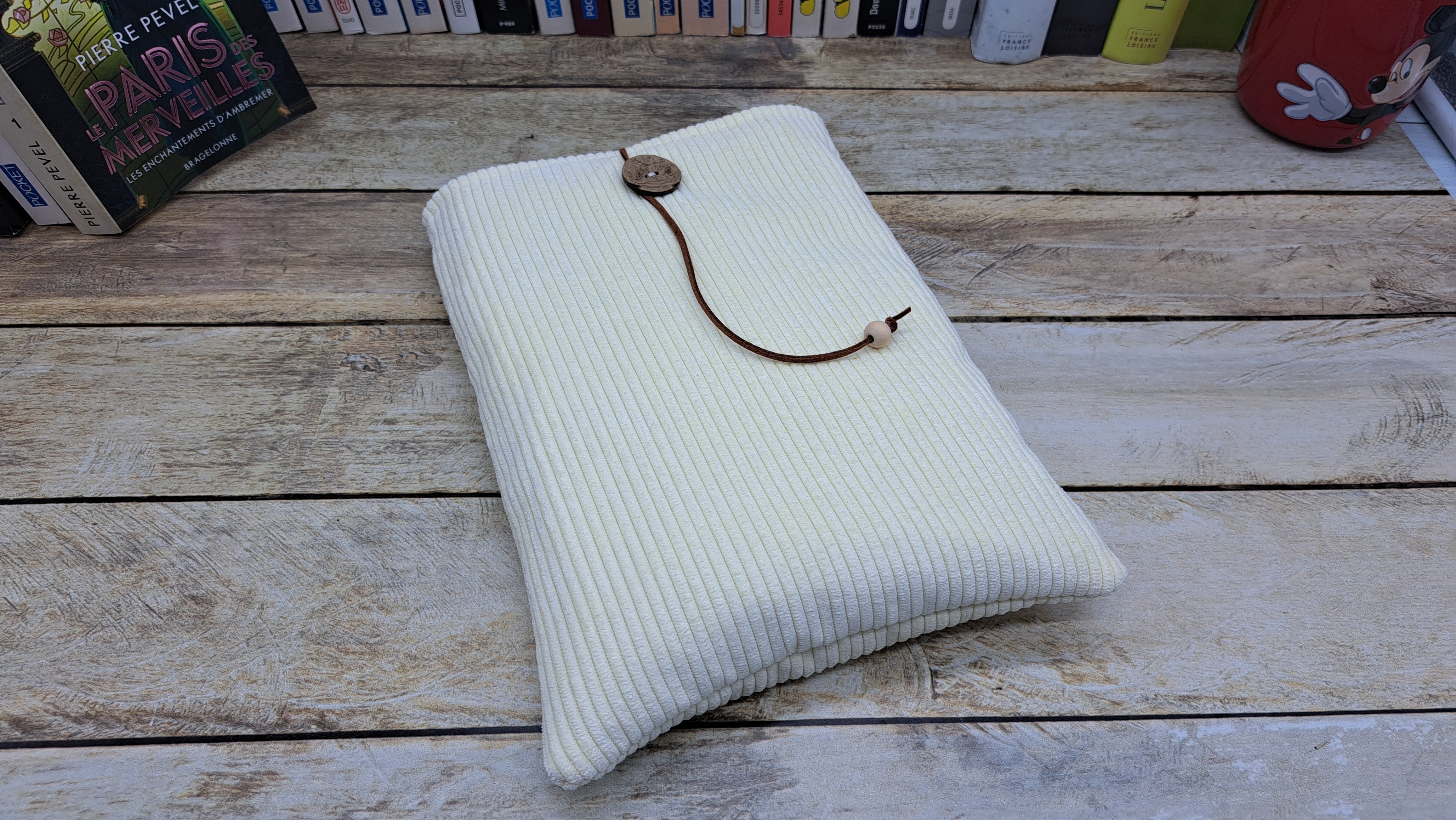 Housse de protection pour livre en tissu velours molletonné se fermant avec un bouton et un cordon