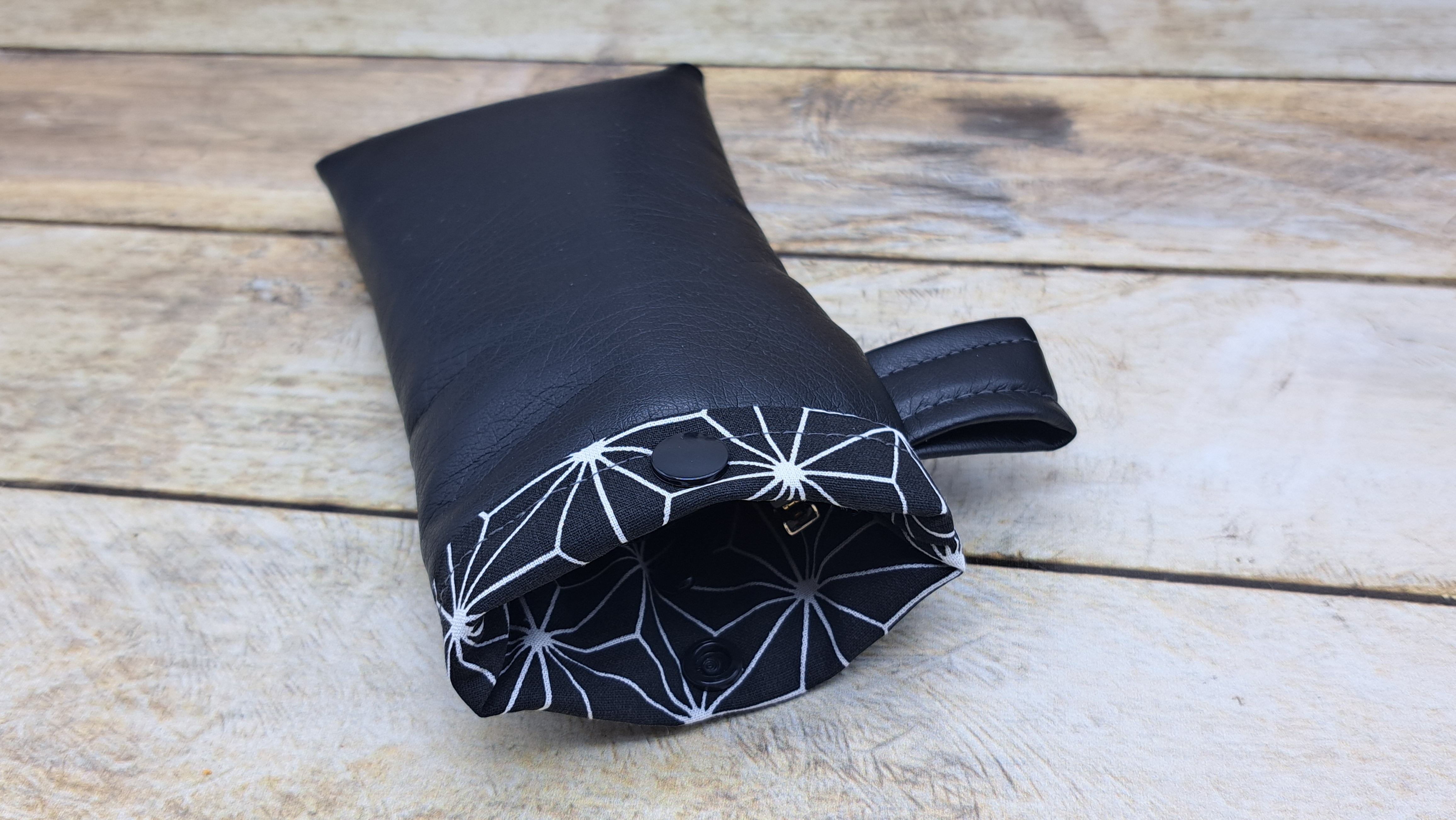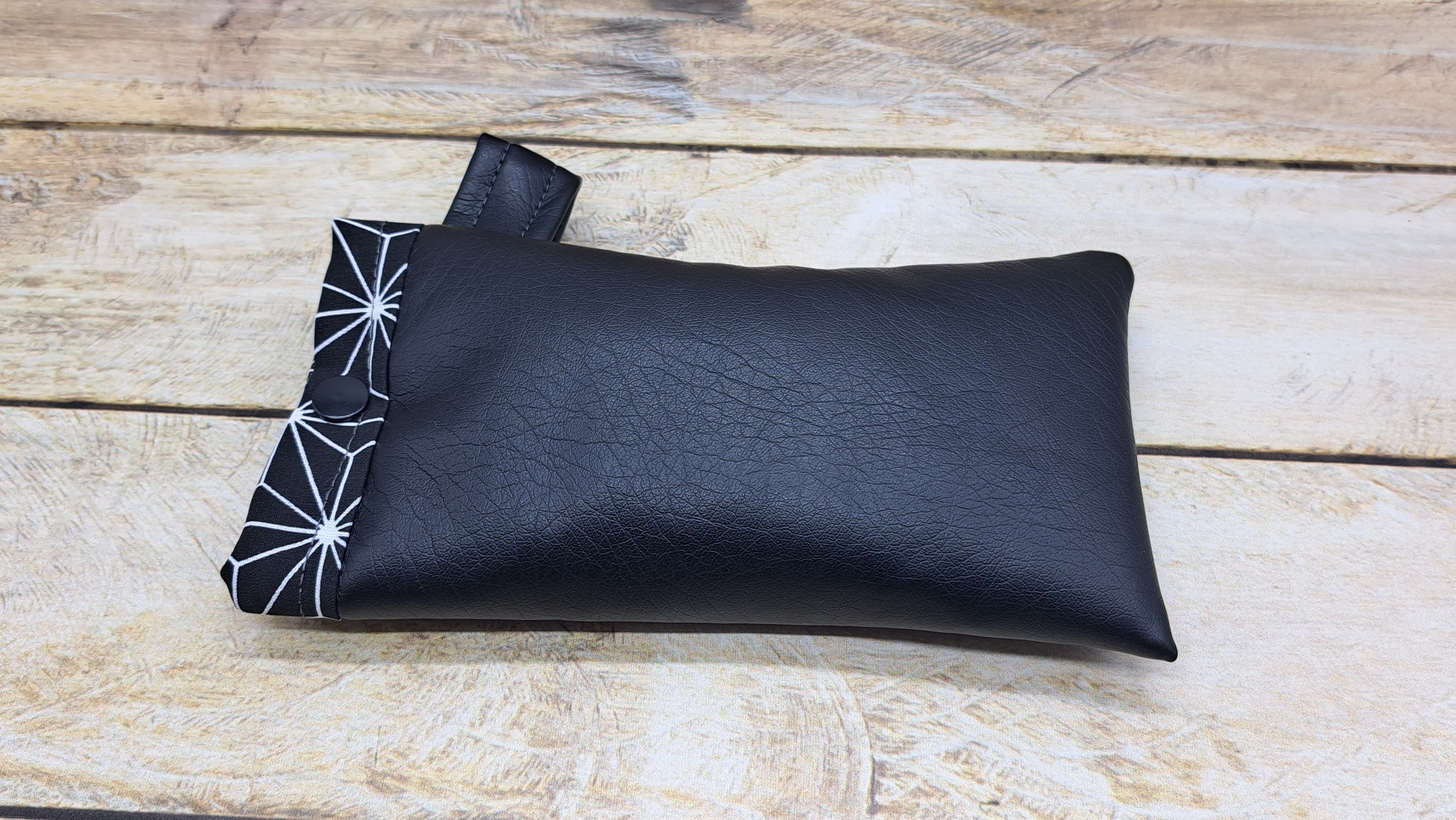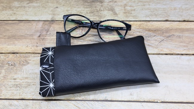 Etui pour lunette en tissu simili cuir et coton molletonné se fermant avec un bouton pression
