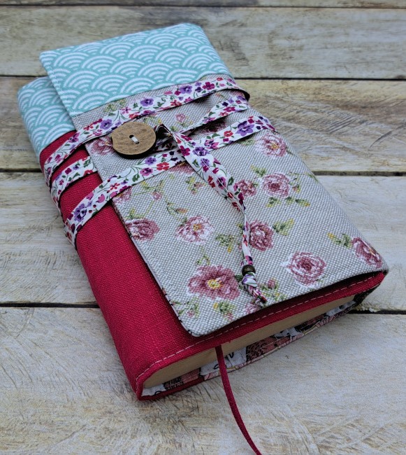 Couverture livre en tissu fait main, couvre livre de poche, cache couverture en tissus fleuri framboiseCouverture Livre Tissu Personnalisé Protège Livre Fait Main