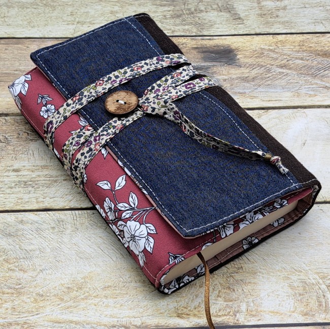Couverture livre en tissu fait main, couvre livre de poche, cache couverture en tissus coton tissu fleur roseCouverture Livre Tissu Personnalisé Protège Livre Fait Main