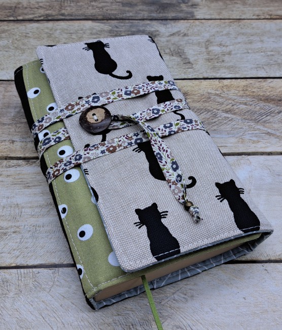 Couverture livre en tissu fait main, couvre livre de poche, cache couverture en tissus coton patchwork chatCouverture Livre Tissu Personnalisé Protège Livre Fait Main