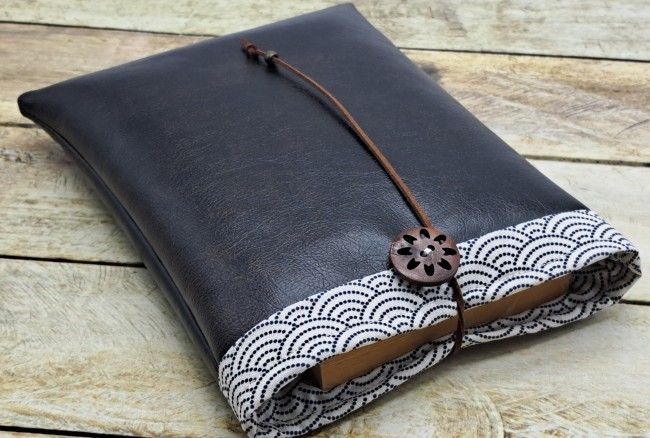 Pochette livre en tissu fait main, protège livre, housse pour livre broché en tissu simili cuir noirPochette Livre Tissu Personnalisé Protège Livre Fait Main
