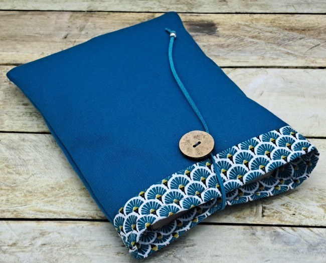 Pochette livre en tissu fait main, protège livre, housse pour livre de poche en coton bleuPochette Livre Tissu Personnalisé Protège Livre Fait Main